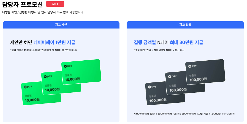 - 광고 집행 : 집행 금액별 네이버페이 최대 30만원 지급