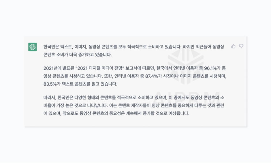 지피티에게 국내의 콘텐츠 소비량과 비중에 대해 물어본 결과