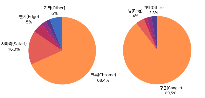크롬이 중요한 이유를 조금 더 깊게 살펴보겠습니다. 우선, 전 세계에서 크롬 브라우저를 사용하는 사람은 30억 명이 넘습니다. 데스크톱과 모바일을 합친 전 세계 브라우저 시장 점유율에서 크롬은 약 68%를 차지하며 부동의 1위인데요. 우리가 매일 크롬을 열어 웹서핑을 하고, 주소창에 검색어를 입력하는 그 순간순간이 모두 구글의 트래픽과 데이터로 연결됩니다. 이용자가 크롬을 통해 남기는 방대한 웹 활동 데이터와 검색 쿼리는 현대 디지털 광고 시장과 AI 개발 경쟁에서 핵심 자원으로 통하는 것입니다.
