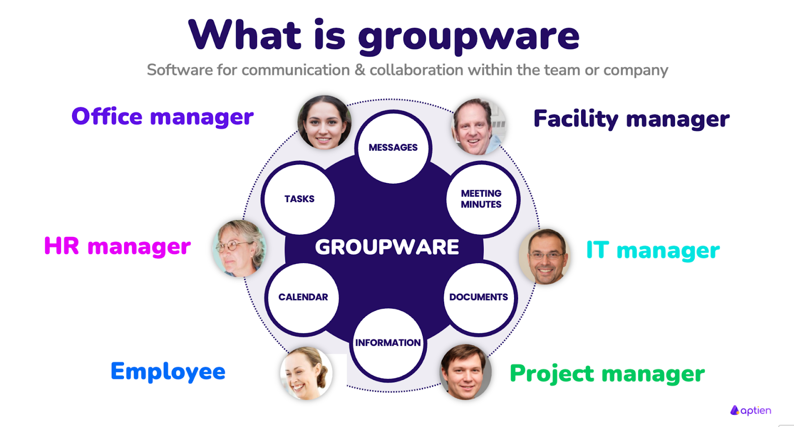 그룹웨어는 조직 구성원 간의 협업/정보 공유/업무 프로세스 관리를 위해 설계된 통합 소프트웨어입니다.
