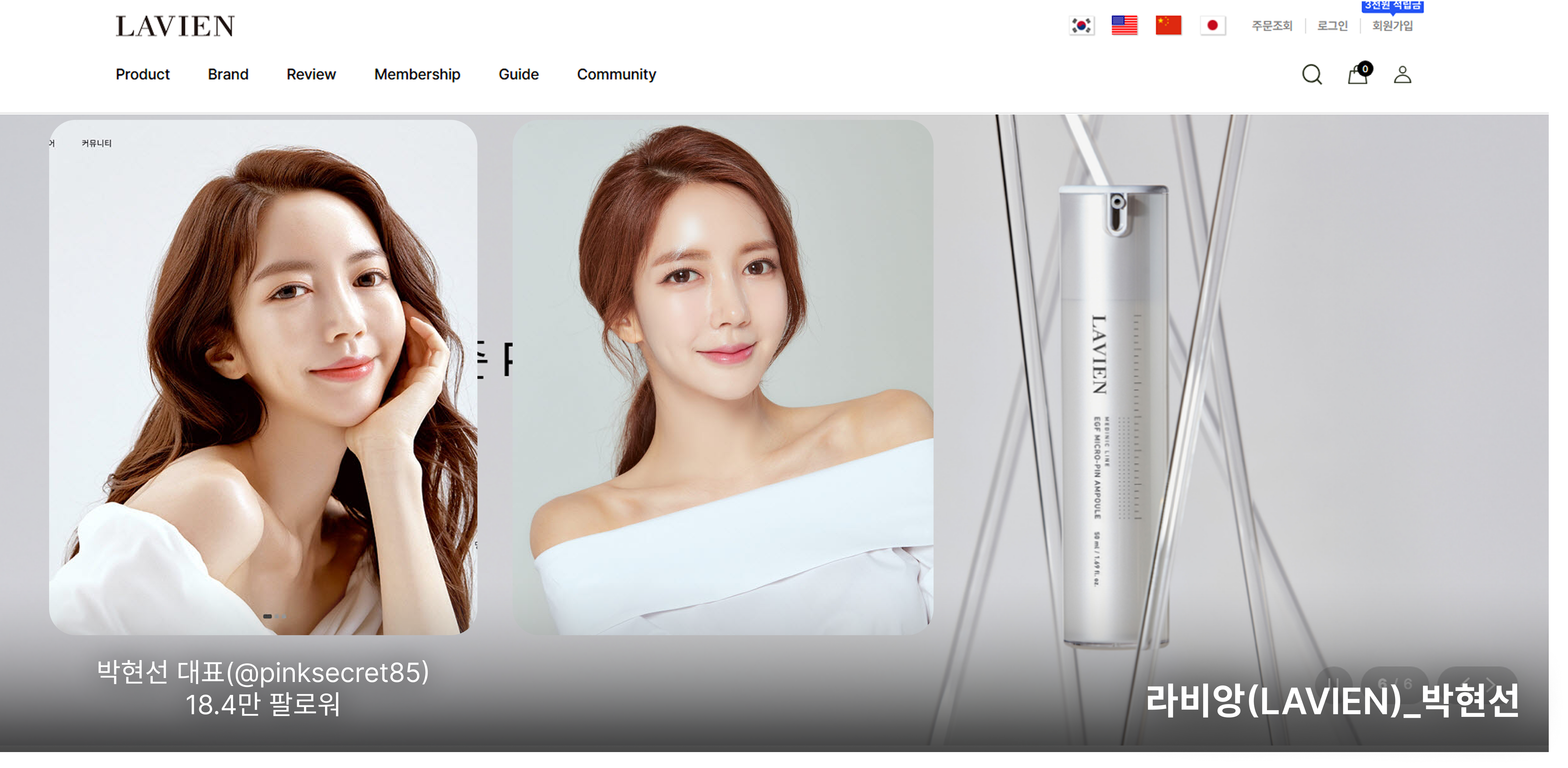 고기능성 화장품 브랜드 라비앙은, 1세대 여성 의류 쇼핑몰 '핑크시크릿’ 대표로도 잘 알려진 박현선 대표가 직접 브랜드의 아이덴티티가 되어 성공한 사례입니다. 박현선 대표는 발레리나 출신의 인플루언서이자 사업가인데요. 자신의 SNS를 통해 일상, 뷰티 팁, 패션 스타일, 건강 관리 루틴 등 다양한 이야기를 꾸준하게 나누며 팔로워들과 가까이 소통했어요. 그녀만의 라이프스타일은 곧 라비앙의 이미지가 되고, ‘박현선 대표처럼 되고 싶다’는 많은 여성들이 나타났죠.