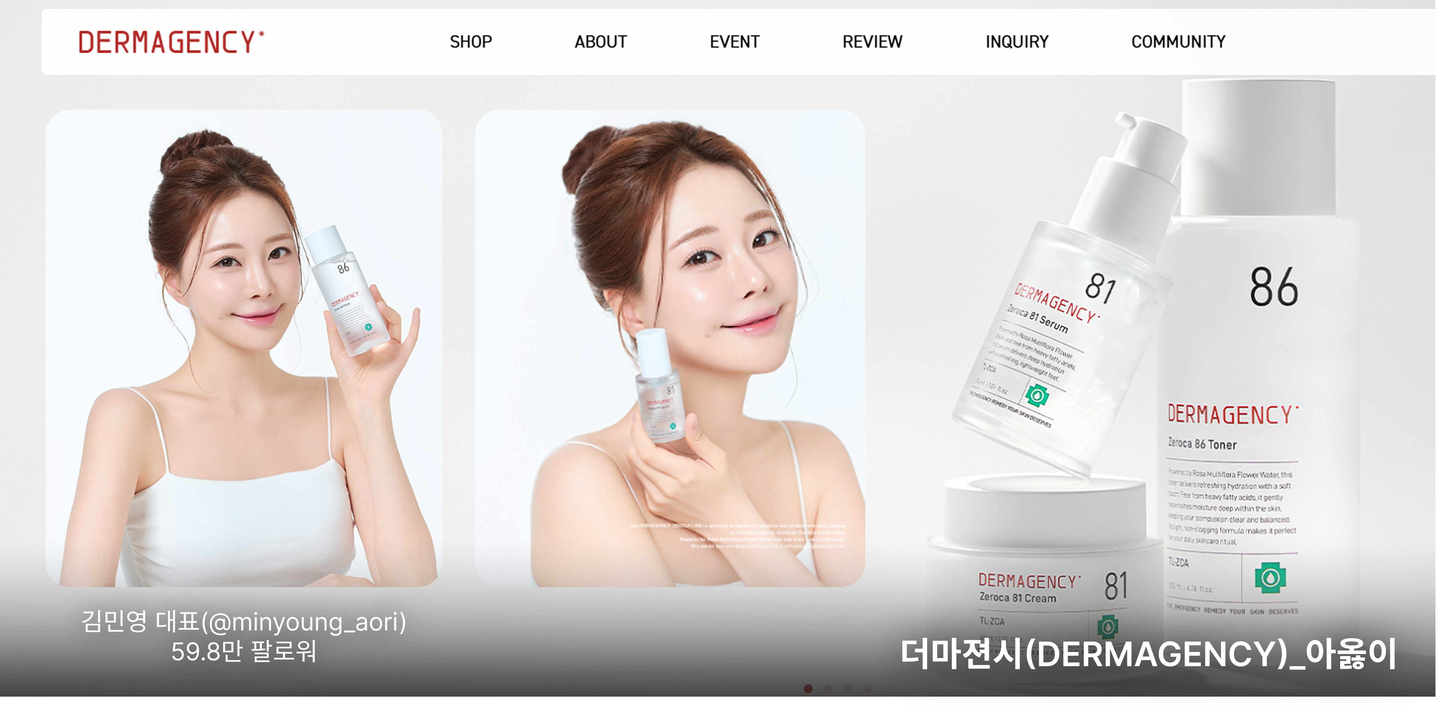 더마젼시는 인플루언서 아옳이로 알려진 김민영 대표가 직접 론칭한 고기능성 더마 화장품 브랜드입니다. 창업자 아옳이가 제품 기획부터 참여해 홍보까지 직접 맡으면서, 팬들의 신뢰를 바탕으로 잠재 고객층을 넓혀왔어요.