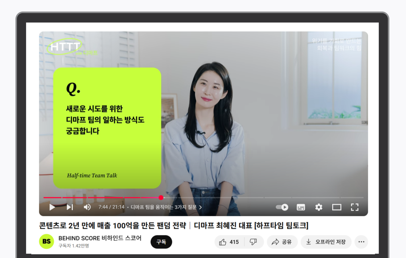 비싼 광고 캠페인이나 외부 인플루언서 섭외에 많은 예산을 쏟지 않아도, 대표가 직접 양질의 콘텐츠를 만들면 브랜드를 효과적으로 알릴 수 있습니다. 마케팅 비용은 아끼면서도 오히려 더 많은 사람에게 다가가고, 전환율도 높아질 수 있죠. 대표의 개인 채널은 스스로 강력한 브랜드 미디어가 되어, 꾸준히 메시지를 전할 수 있는 매개체가 되는 거예요.