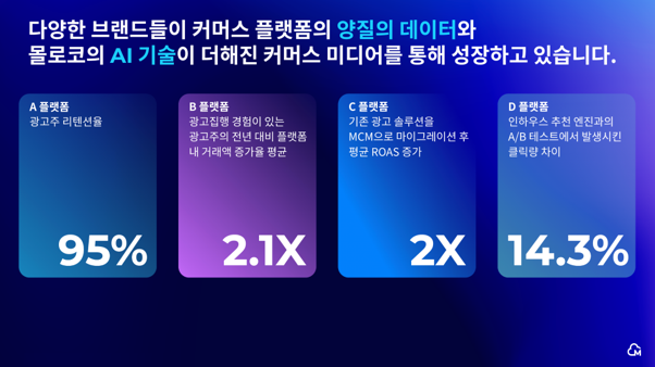 몰로코는 이러한 변화 속에서 퍼스트 파티 데이터와 AI 기반 광고를 통해, 커머스 플랫폼과 브랜드가 함께 성장할 수 있는 길을 제시합니다.