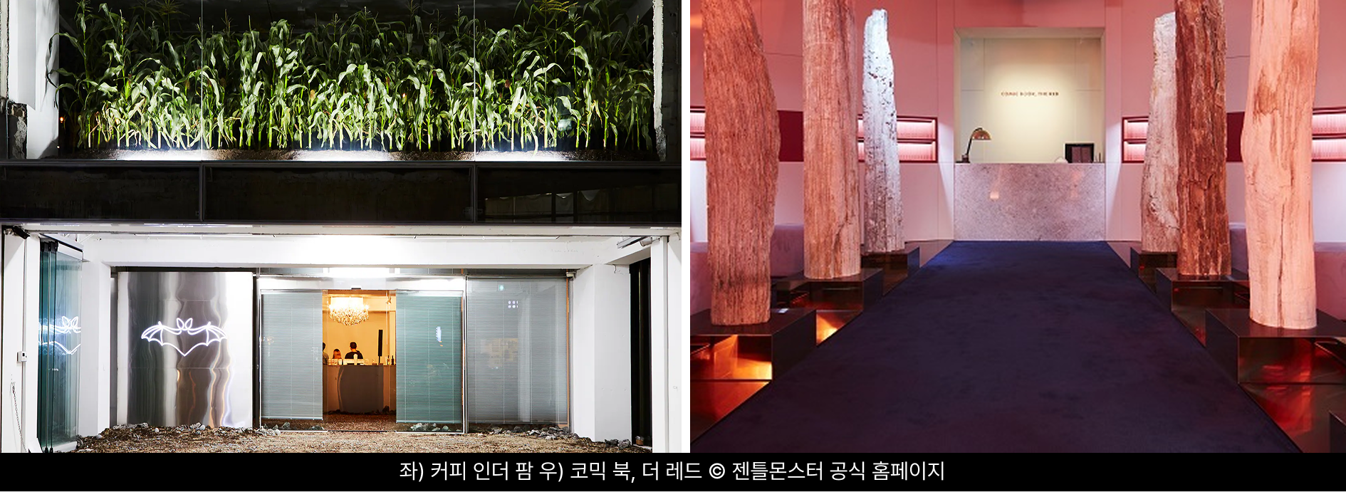 이처럼 옥수수밭에서 커피를 마시거나 젠틀몬스터가 직접 선정해 재디자인한 만화책을 감상하는 경험은 단순한 관람을 넘어 방문객을 공간 콘텐츠 속으로 끌어들이는 매개가 되었고, 브랜드를 더욱 깊게 각인시키는 계기가 되었어요.