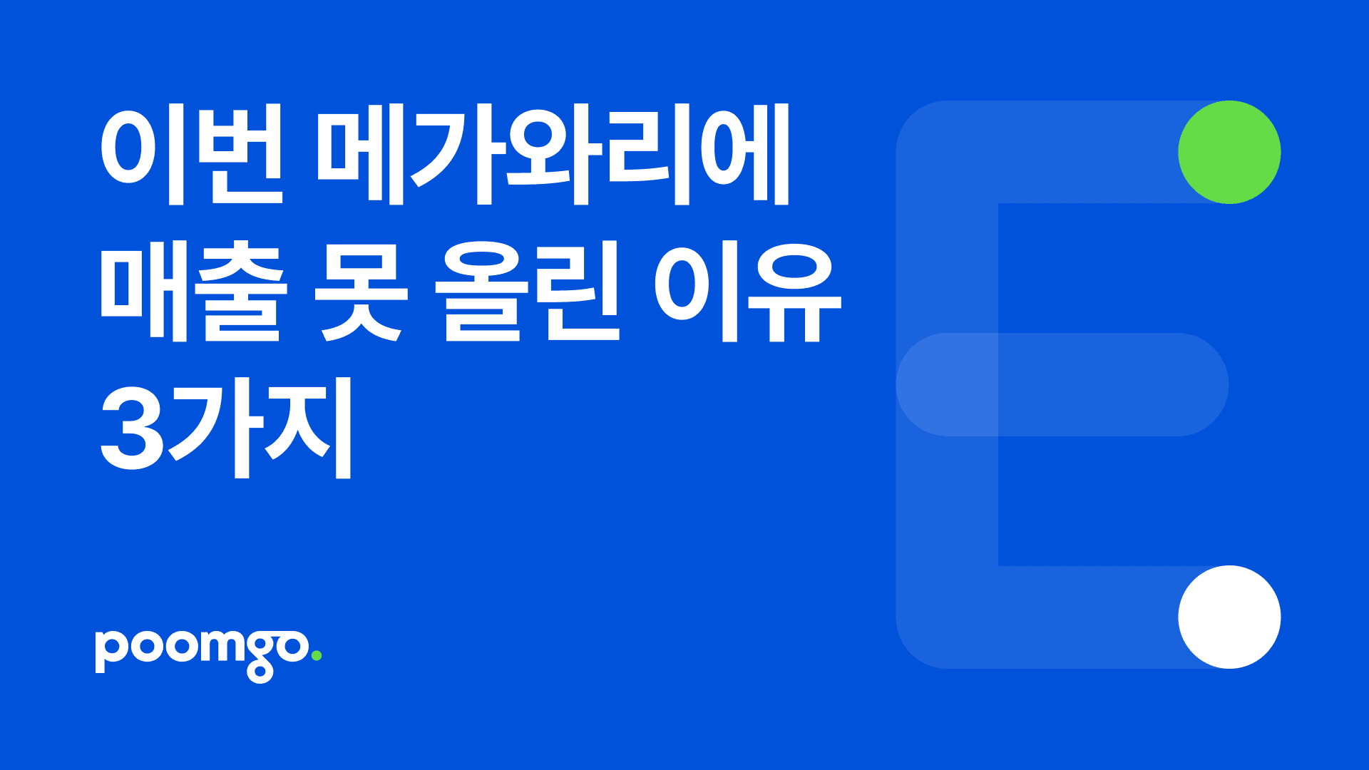 - 우리 브랜드의 메가와리 매출이 예상보다 적다면? 성공적인 메가와리를 위해 실패 원인과 실패를 막는 전략 3가지를 확인해보세요.