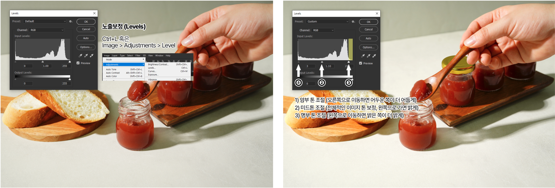 ‘암부(어두운 영역)–미드톤–명부(밝은 영역)’ 순으로 밸런스를 맞추는 것이 핵심입니다.
