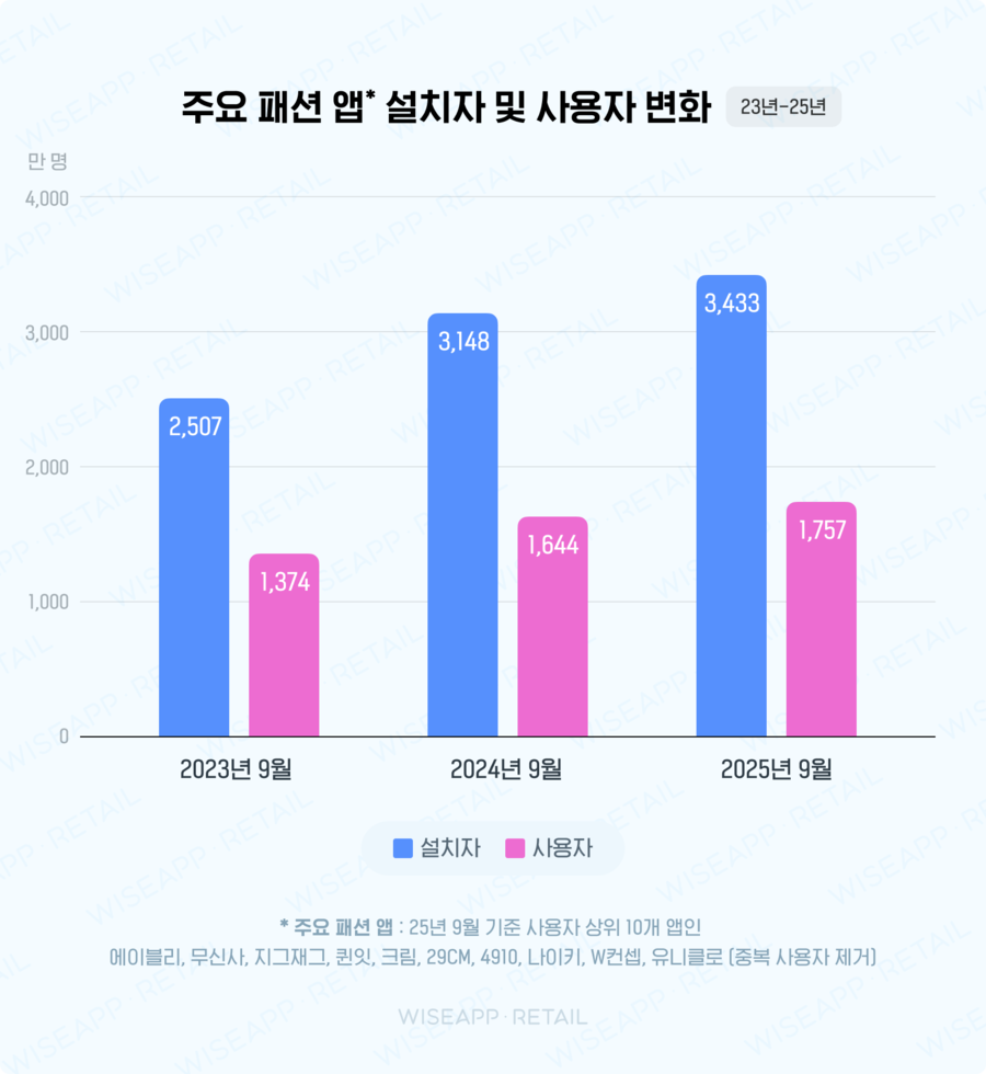 ✅ 주요 패션 앱 사용자 1,700만 명 돌파, 한국인 1인당 평균 1.8개 앱 사용