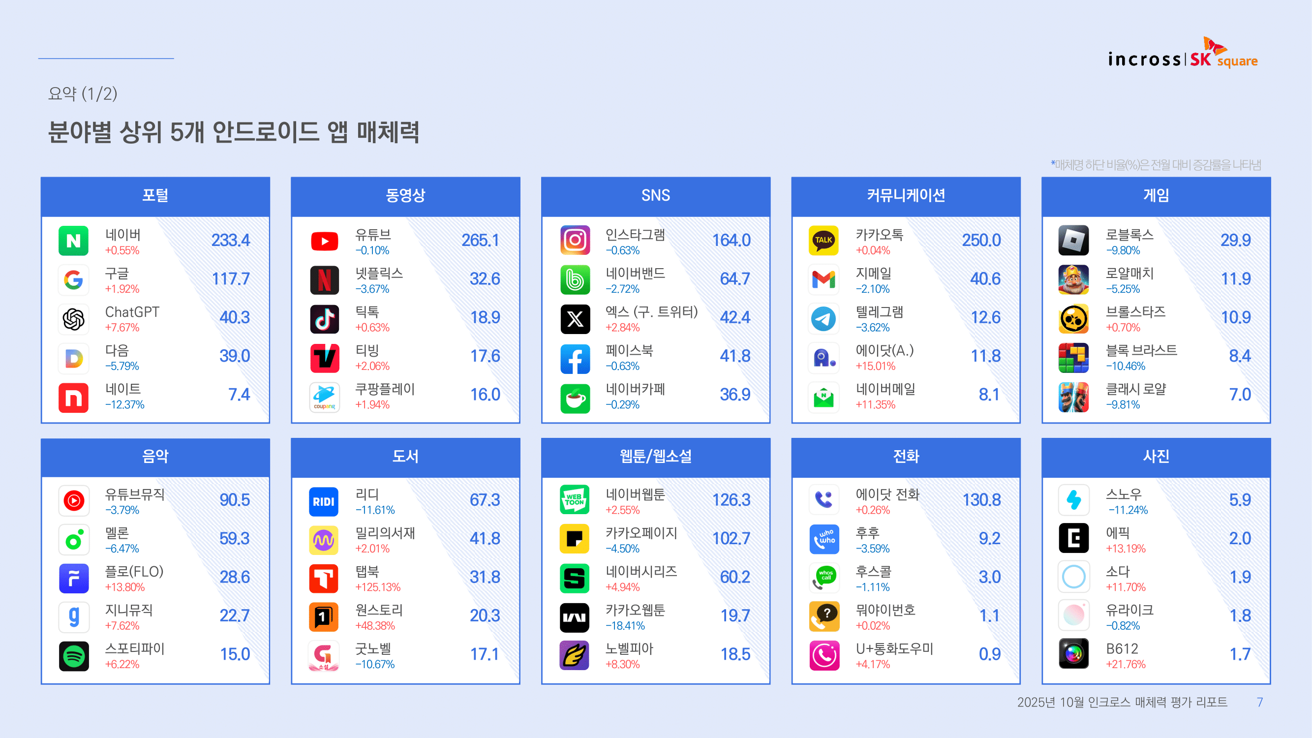 본 아티클은 인크로스 2025년 10월 매체력 평가 리포트를 기반으로 작성되었습니다.