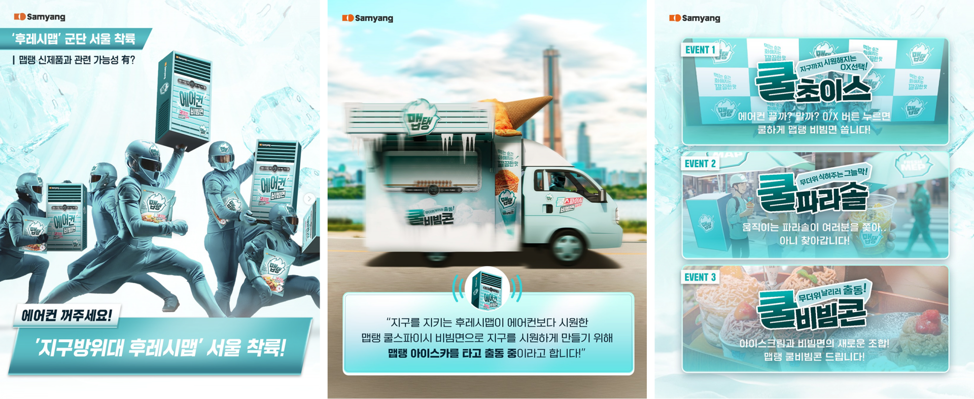뿐만 아니라, 삼양은 WWF(세계자연기금)과 손을 잡고 '맵탱의 시원함 덕분에 에어컨 사용을 줄일 수 있다'는 재미있는 환경 캠페인을 전개했어요. 제품 홍보를 넘어 '시원함=지속가능성=맵탱 비빔면'이라는 신박한 메세지를 곁들인건데요. 캠페인의 수익 일부는 기부로 이어지며 사회적 가치와 브랜드 이미지를 동시에 강화시켰어요.