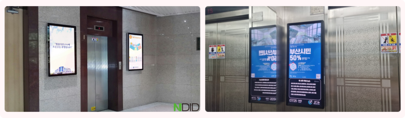 사람들이 많이 모이는 곳인 엘레베이터에서도 영상 옥외광고를 볼 수 있는데요. 데이터 기반의 분석을 통해 효과적인 시간대와 위치를 파악할 수 있고 그에 맞춘 광고를 각각 제공할 수 있는 장점이 있습니다. 예를 들어 단지별, 지역별 등 타겟을 세분화했다면 주거 단지엔 가족과 관련 있는 광고를, 오피스 빌딩엔 전문직 종사자들과 관련 있는 광고를 송출하는 것이죠. 실제로 숙박 및 여행 플랫폼인 여기어때는 유자녀 가구 비중이 높은 단지에는 키즈 풀빌라 광고를, 하이앤드 비중이 높은 단지에는 고급 한옥 스테이 광고를 송출했었다고 해요.