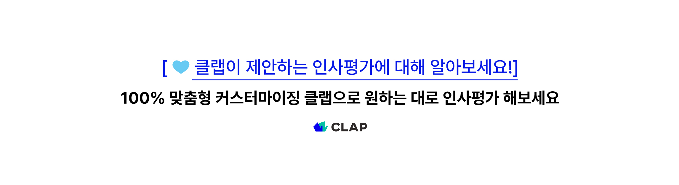 💖[CLAP Letter를 구독해 보세요 💌 ] 클랩 레터는 HR담당자분들께 팀원과 리더가 함께 더 나은 조직 문화를 만들어가는 데 도움이 될 수 있는 인사이트가 담긴 아티클을 매 월 발송해드려요. 클랩 레터를 구독하고 실무에 필요한 꿀팁과 정보를 받아보세요! 구독하러가기 ⇒ click 🌈 |