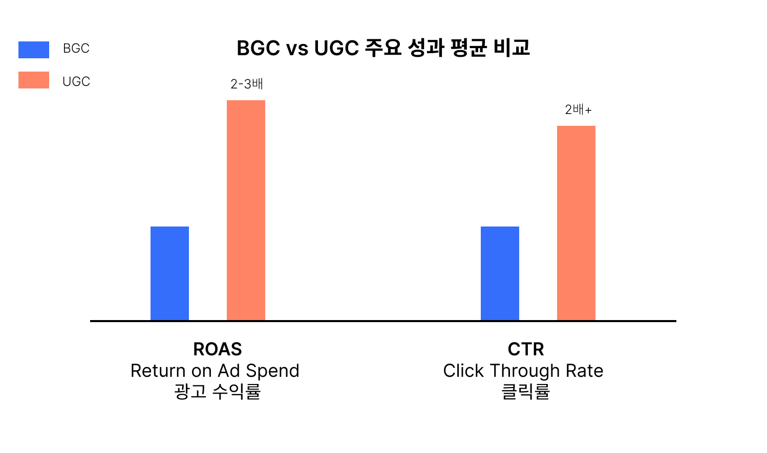 실제로 많은 캠페인에서 UGC 기반 광고가 BGC 대비 평균 2~3배 이상 높은 ROAS를 기록하고 있다고 합니다.