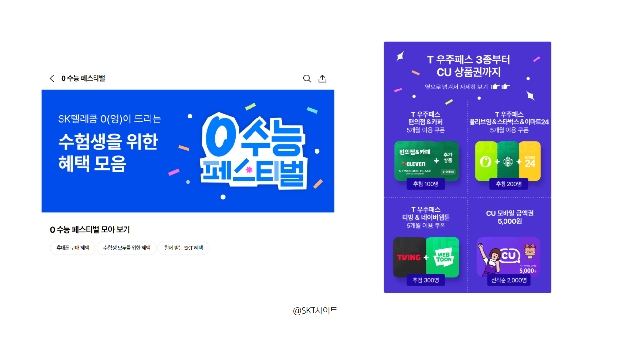 통신 3사의 수능 마케팅은 단순히 단말기 할인을 넘어, 신규 고객을 자사의 디지털 생태계로 즉각 유입시키는 '온보딩 캠페인'으로 작동합니다. 수험표가 '할인 쿠폰'이 아닌, '앱 설치와 멤버십 가입을 유도하는 트리거' 역할을 하게 된 것이죠. 자세한 사례를 살펴볼까요?