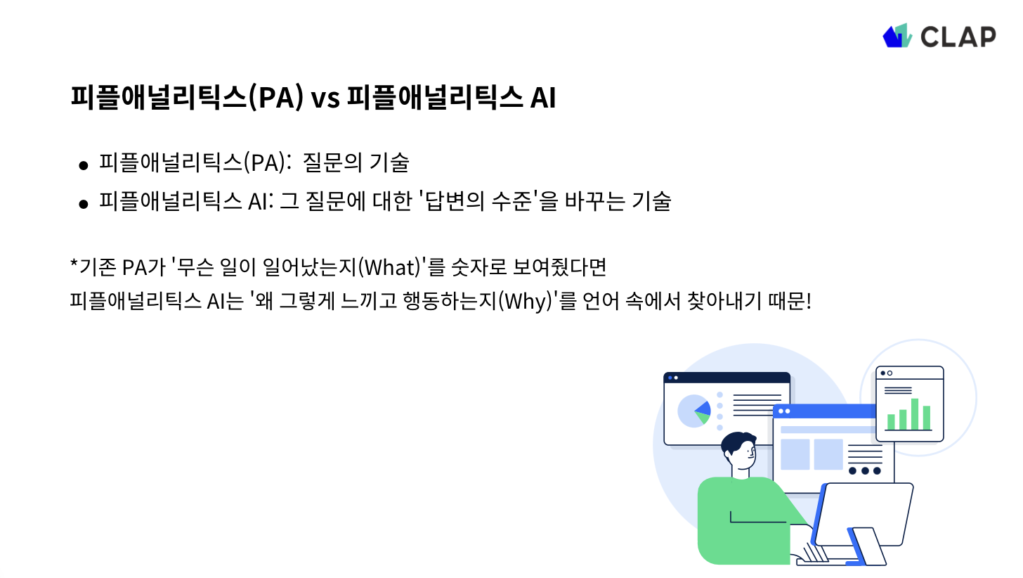 피플애널리틱스(PA)가 '질문의 기술'이라면, 피플애널리틱스 AI는 그 질문에 대한 '답변의 수준'을 바꾸는 기술입니다.
