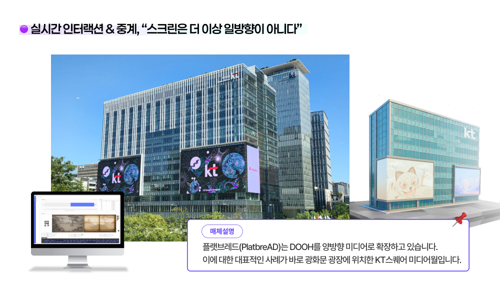 이에 대한 대표적인 사례가 바로 광화문 광장에 위치한 KT스퀘어 미디어월(Media Wall)입니다.