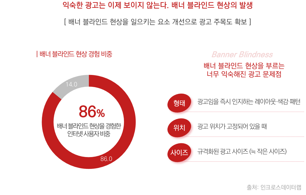 사용자는 광고가 보여도 무의식적으로 넘겨버리는 ‘배너 블라인드’ 현상을 겪고 있는데요.