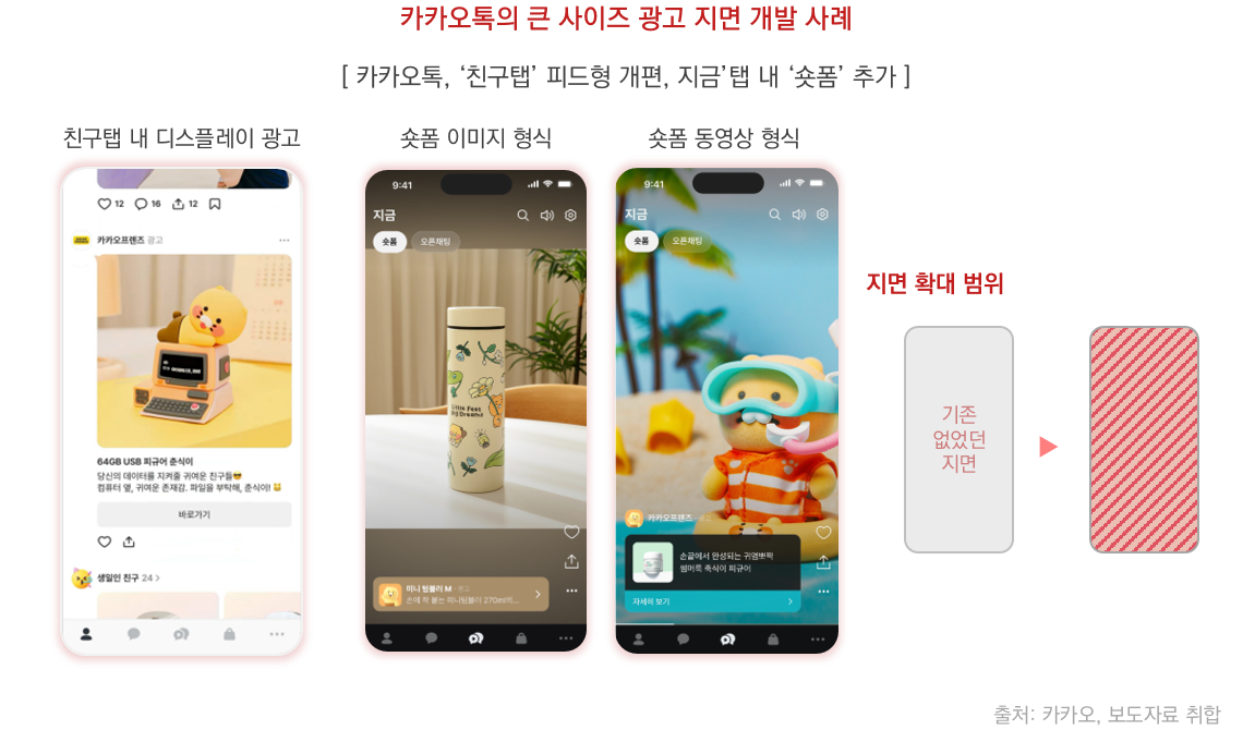 메신저 중심 플랫폼에서 콘텐츠 소비 플랫폼으로 확장하면서, 대형 광고 지면도 다수 신설했어요.