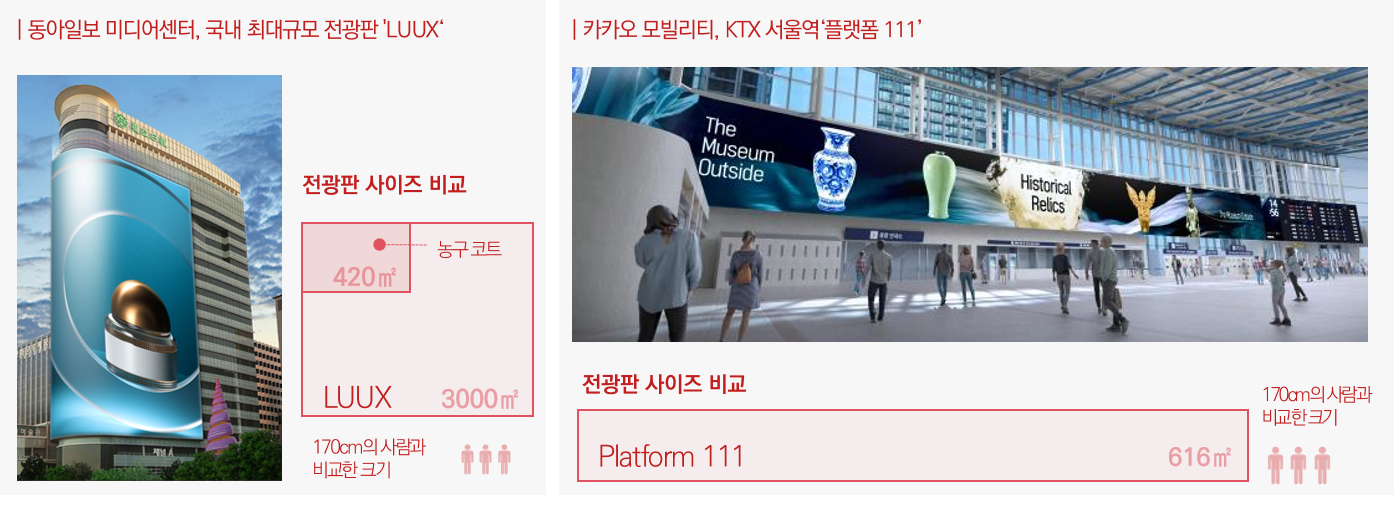 - 광화문 ‘LUUX’: 농구 코트 7배 규모의 국내 최대 디지털 사이니지
