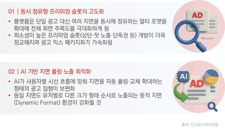하나의 영역에 여러 광고를 동시에 배치하는 멀티 포맷 전략 등을 활용해 주목도를 극대화할 것으로 보여요.