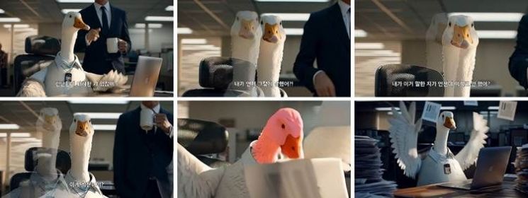 까사미아는 캐릭터를 활용한 AI 광고 시리즈를 제작했습니다. 퇴사를 결심한 ‘오리’ 와 그 빈자리를 채우며 등장한 신입 ‘거위’ 가 주인공입니다. “오리가 퇴사하고, 유능한 거위가 새로 입사했다” 는 설정을 통해 신제품 캄포 구스의 등장을 자연스럽게 연결했습니다. 기존 오리털 소파가 거위털 소파로 업그레이드되었다는 메시지를 스토리 안에 녹여낸 것이 특징입니다. 여기에 직장인의 애환을 담은 에피소드를 더해 공감 요소를 강화했습니다.