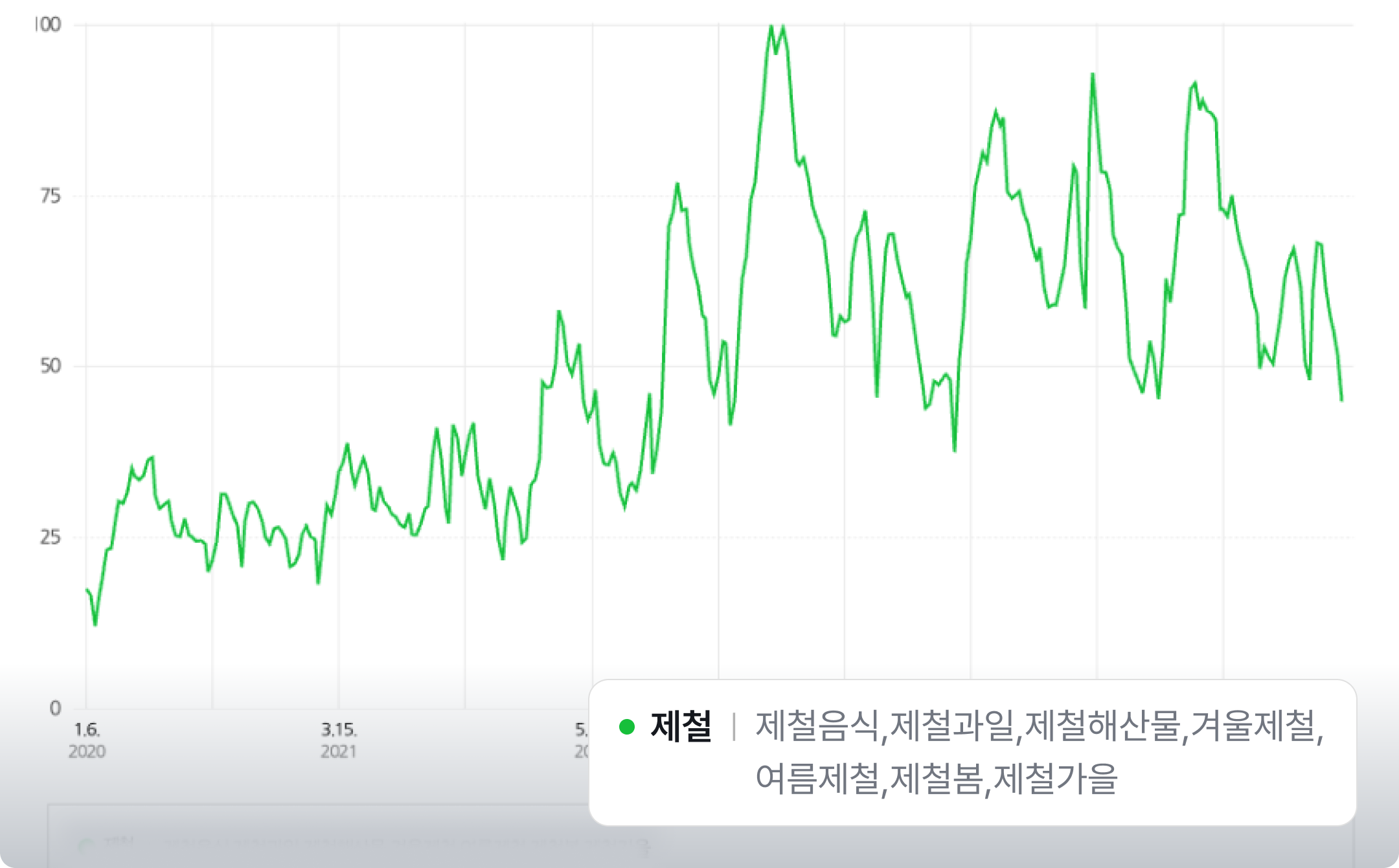 1. 지금 사야 하는 이유를 명확하게 만들어주세요. 제철 소비는 결국 이 타이밍에서만 얻을 수 있는 가치를 얼마나 설득력 있게 보여주느냐에 따라 달라져요. F&B 브랜드라면 산지·수확 시기·풍미 같은 ‘제철 스토리’를 콘텐츠로 풀어내 보세요. 패션 브랜드라면 시즌 한정 소재·컬러로 ‘이번 시즌에만 가능한 무드’를 강조하거나, 라이프스타일 브랜드라면 계절을 집에 들이는 연출법·테마 제안을 활용할 수 있어요.