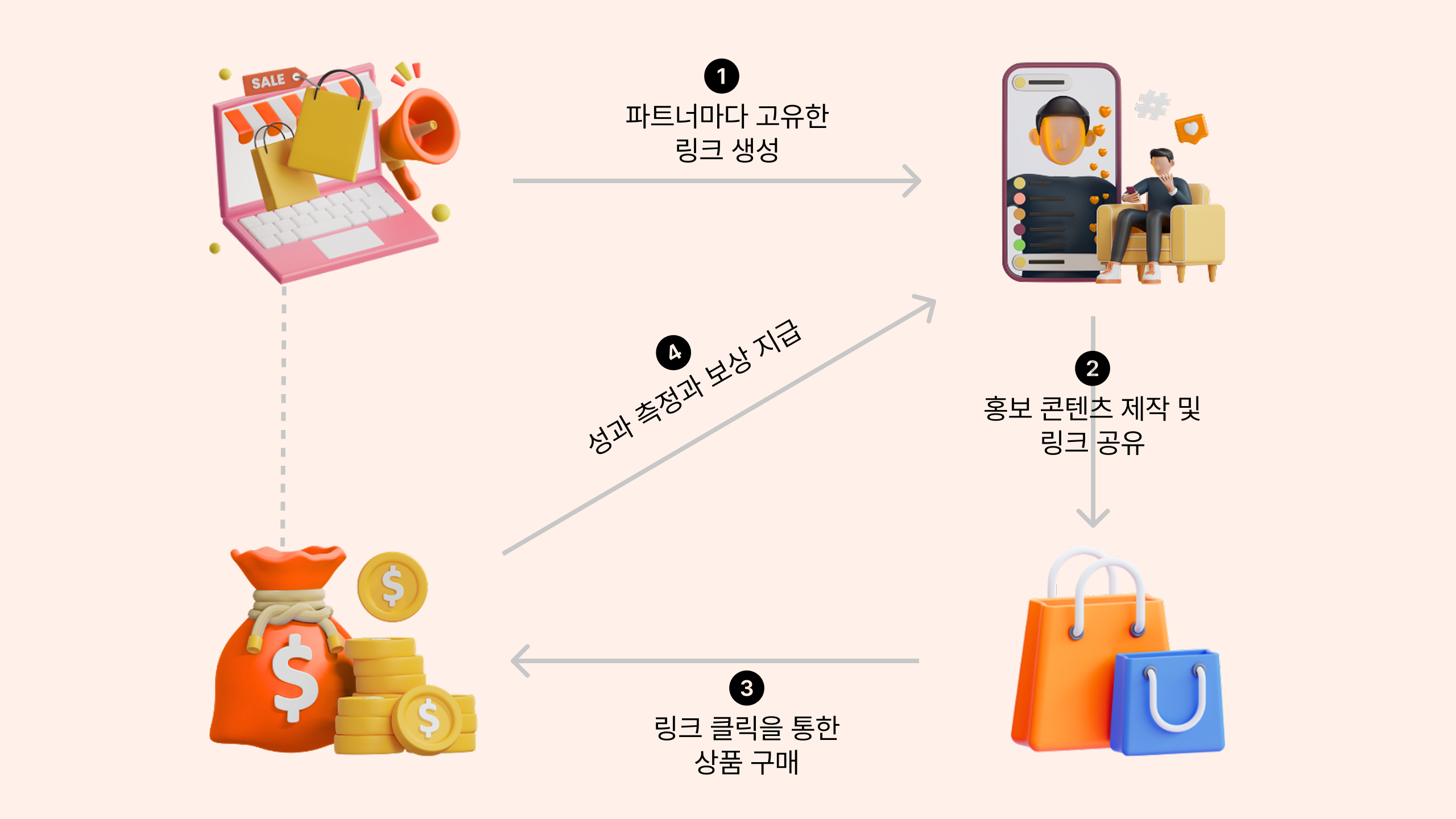 정확한 성과 측정: 파트너마다 고유한 어필리에이트 링크를 통해 성과를 추적하므로, 어떤 매출이 어떤 파트너에게서 발생했는지 명확하게 알 수 있어요.