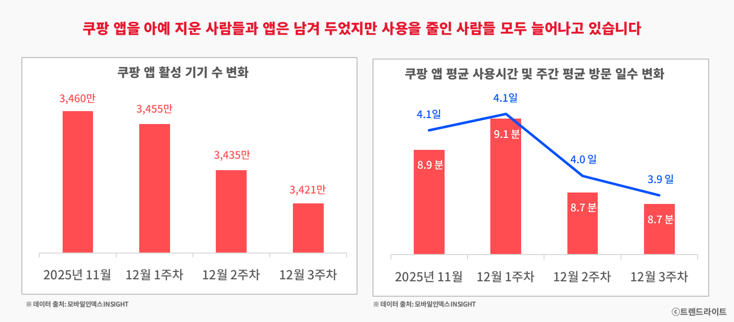 이는 쿠팡을 완전히 끊지는 않더라도, 예전만큼 적극적으로 둘러보지 않고 있다는 뜻입니다.