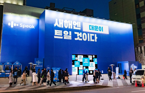 스픽(Speak)은 2026년 1월 초부터 본격적인 옥외 캠페인을 시작하여 새해를 겨냥한 메시지를 확산시켰습니다. 김우빈이라는 인지도 높은 배우를 모델로 기용하여 브랜드에 대한 신뢰감과 호감도를 높이는 전략을 취했는데요. 캠페인 슬로건은 “영어, 올해는 트일 것이다”로, 새해를 맞아 올해는 영어로 막혔던 말문을 트이게 하자는 희망적인 다짐을 담았습니다.