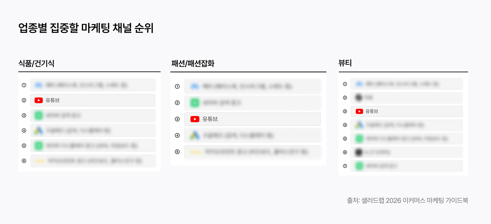 식품/건기식, 패션/패션잡화, 뷰티 업종 모두 2026년에 집중할 마케팅 채널에 대해 네이버를 주목했어요.