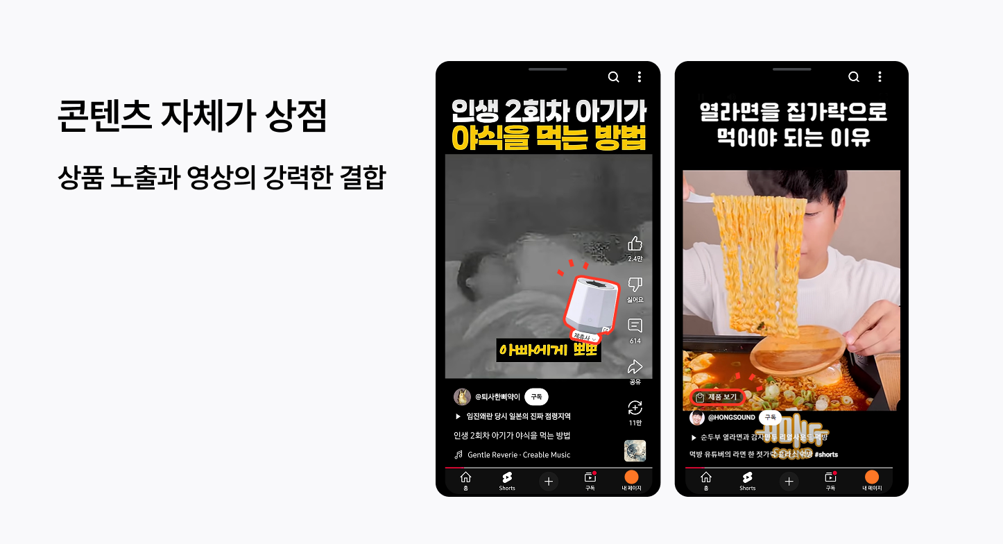 요즘 빼놓을 수 없는 숏폼 콘텐츠와 함께 하단에 연동된 상품 광고를 배치해 이용자가 즉시 상품 구매 페이지로 이동할 수 있게 했어요. 고객 여정을 최소화해 고객의 구매를 적극적으로 유도하는 거죠. 또한 쇼핑탭은 이용자의 연령대와 관심사를 기반으로 개인화된 상품을 추천하도록 했어요.