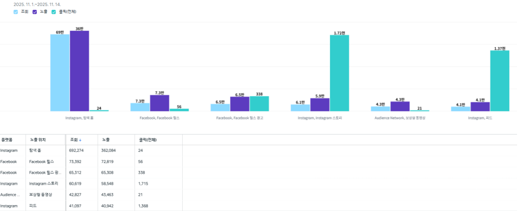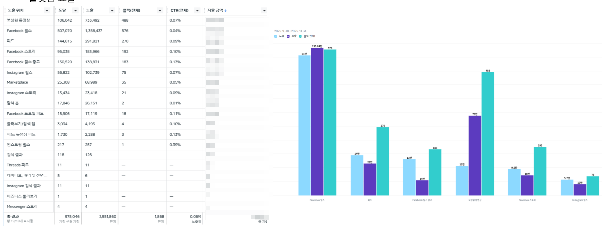 10월 진행된 메타·인스타그램 광고의 주요 수치는 다음과 같다.