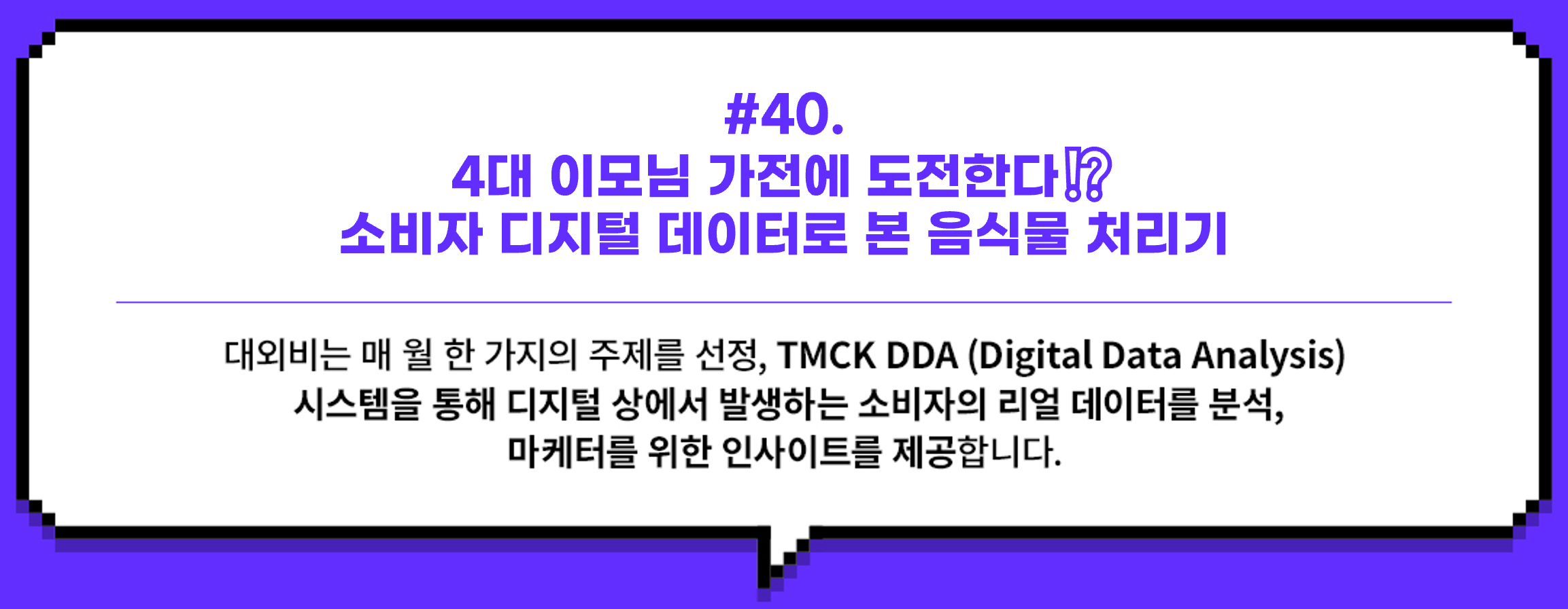 [대외비.]🤫는 마케터를 위한 트렌드 인사이트 리포트로 매월 이슈가 되는 한 가지의 주제를 선정, TMCK DDA(Digital Data Analysis) 시스템을 통해 디지털 상에서 발생하는 소비자의 리얼 데이터를 분석, 마케터를 위한 인사이트를 제공하는 트렌드 리포트입니다.
