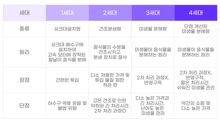 ↑(출처1~4세대 비교까지! 음식물 처리기 5 구매 가이드, klug)