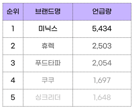 음식물 처리기 브랜드 언급량 순위