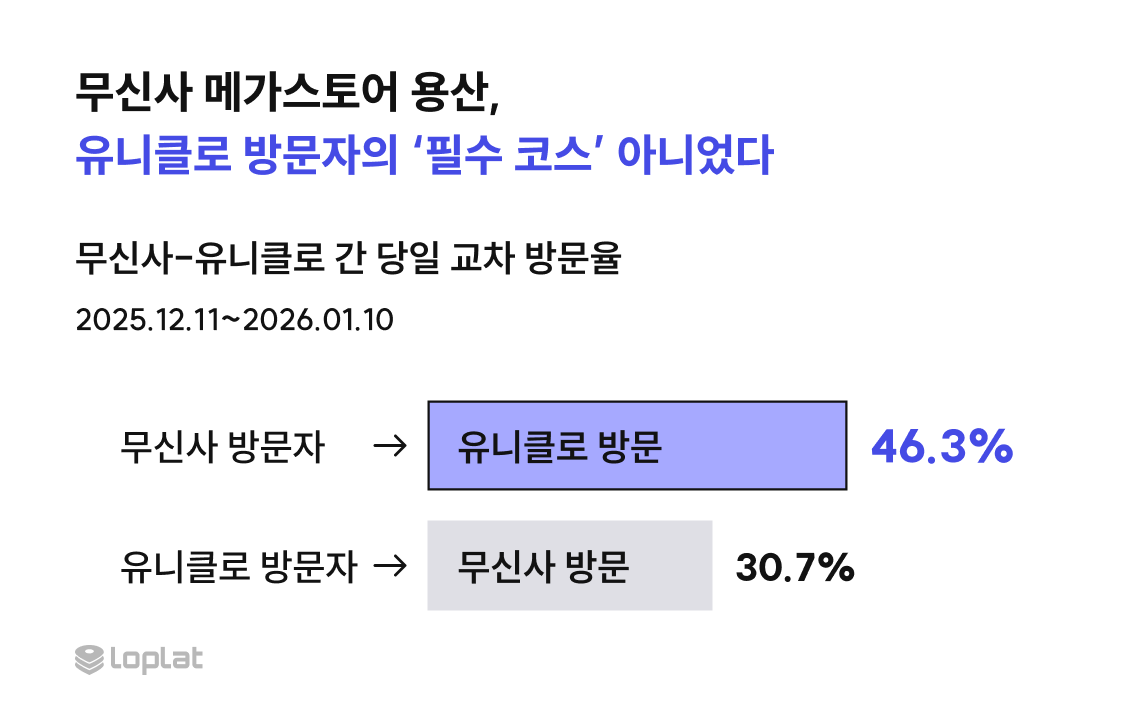 그중에서도 유니클로와의 교차 방문 비중이 약 46.3%로 가장 높았습니다.
