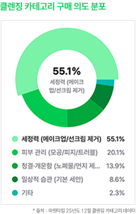 메이크업 잔여물이 남을까 봐 걱정이 구매를 좌우하고, 확실한 세정력에 반응합니다.
