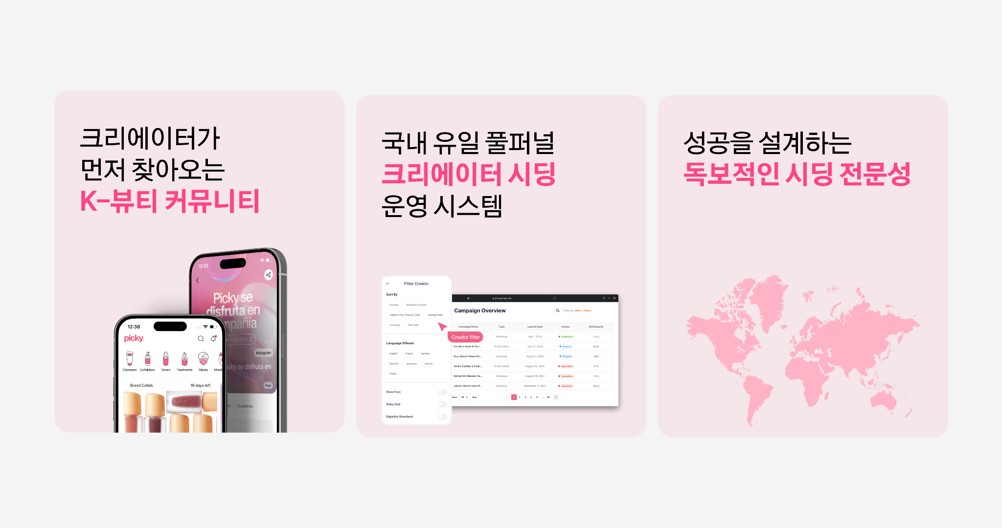 ✅피키는 매월 1만 명의 마이크로 크리에이터가 자발적으로 찾아오는 자체 앱을 보유하고 있어, 확실하고 빠르게 대량의 물량을 확보할 수 있습니다.