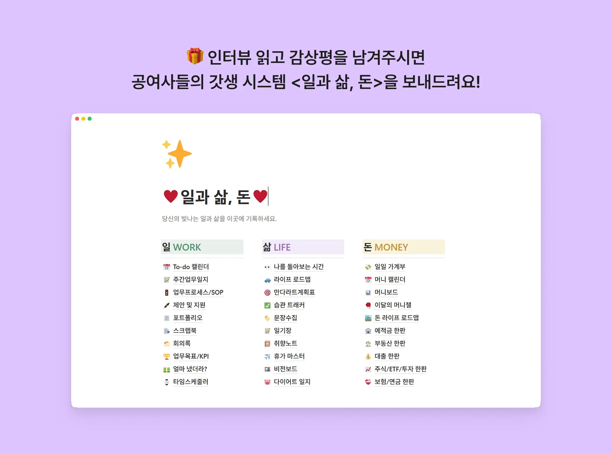 첫 템플릿이자 히트 상품이 된 <일과 삶, 돈> 은 어떻게 탄생했나요?