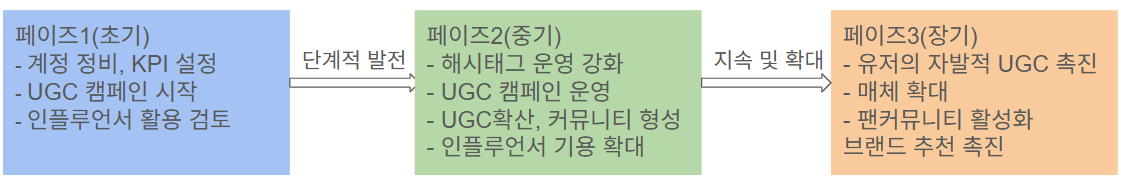 UGC를 확장하는 데 있어 특히 효과적인 방법은 마이크로 인플루언서를 활용하는 것입니다. 이들은 소비자 시선에서 영향력 있는 추천 콘텐츠를 생성할 뿐만 아니라, 공식 계정에서도 이를 함께 게시함으로써 브랜드에 대한 친근감과 신뢰도를 높여줍니다. 나아가 다양한 인플루언서의 기용이나 파워 인플루언서와의 협업으로 확장하는 전략도 병행할 수 있습니다.