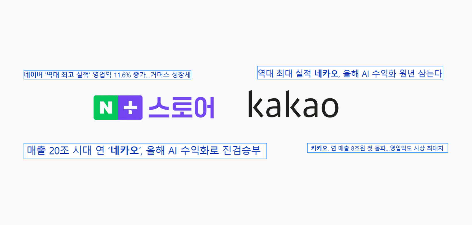“네카오 역대 최대 실적”, “매출 20조 네카오 시대”, “쿠팡 빈틈 꿰차는 네카오”