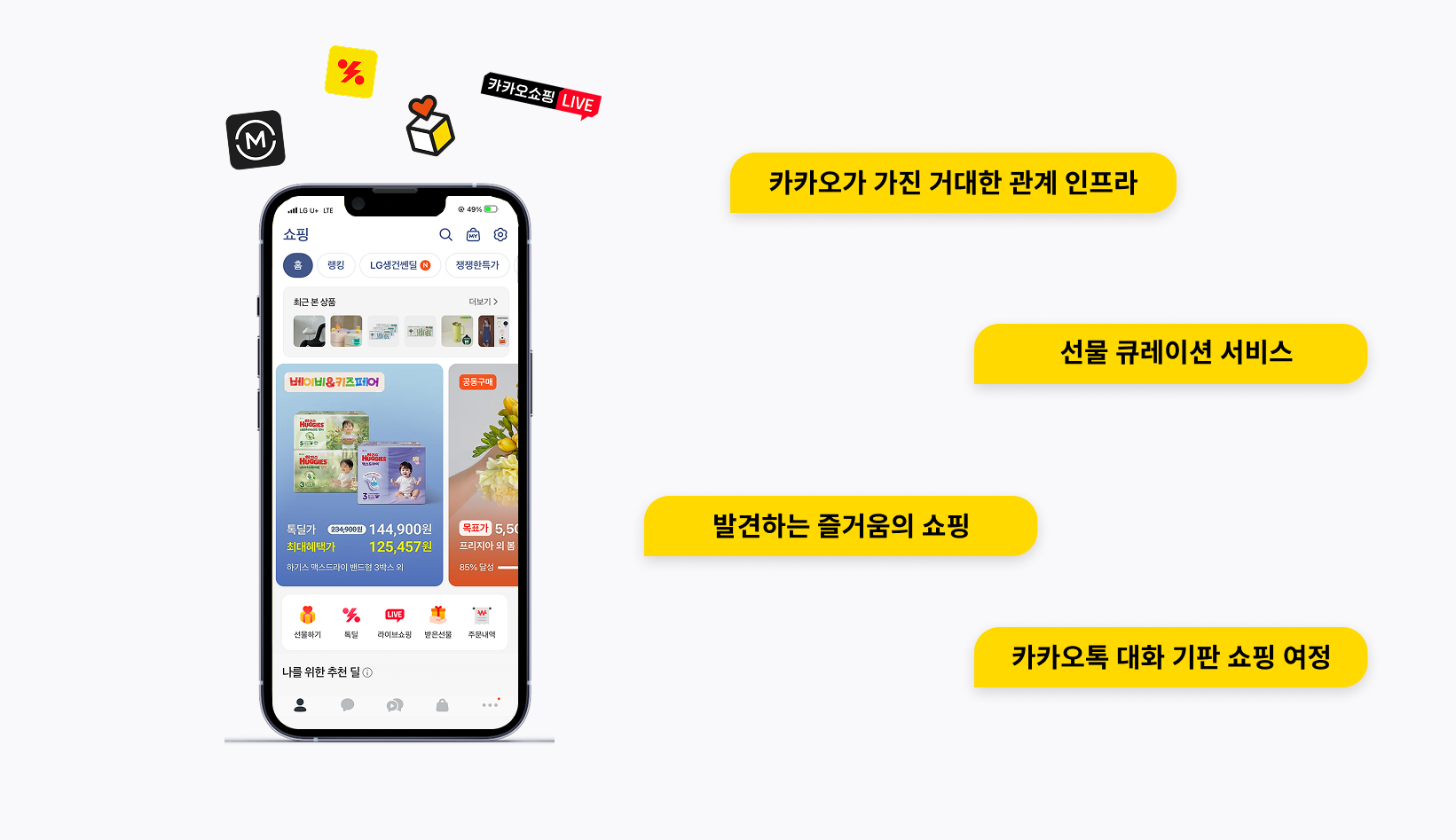 여기에 카카오는 '톡딜'과 '카카오 메이커스'를 통해 '발견의 즐거움'을 꾀하고 있어요. 톡딜은 사용자가 직접 상품 링크를 공유하게 만드는 자발적 바이럴을 유도하며, 별도의 마케팅 비용 없이도 강력한 확산력을 보여줍니다. 더불어 '카카오 메이커스'를 통해 배송의 속도를 넘어서는 '발견의 즐거움'도 선사하고 있어요. 특히 AI가 사용자의 일정을 분석해 "수고한 나를 위한 보상"을 제안하는 '자기 구매' 전략은 선물하기 시장을 폭발적으로 키우며 매출을 성장 시키는 데 한 몫했죠. 결국 카카오는 관계라는 거대한 인프라 위에 AI라는 지능을 더해, 배송 속도가 주지 못하는 '심리적 만족'을 매출로 견인하는 데 성공했어요.