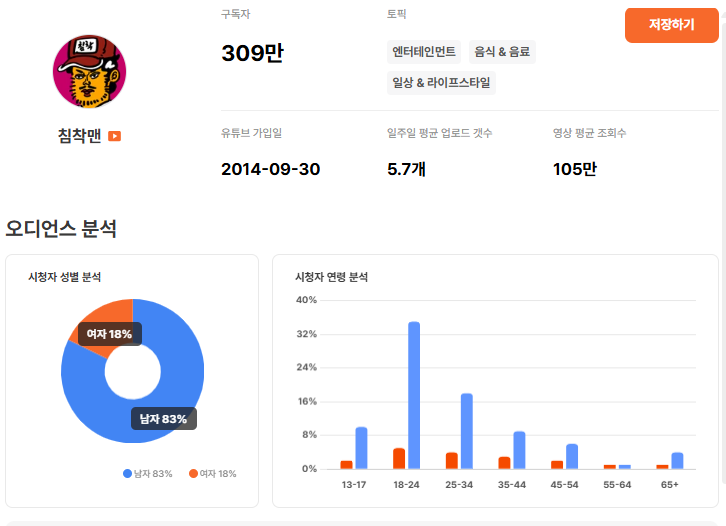 구독자 수는 많은데 실제 시청층이 다르면 효율은 바로 흔들립니다. 특히 브랜드가 명확한 타겟 연령을 가지고 있다면, 조회수보다 더 중요한 건 누가 보고 있느냐죠.