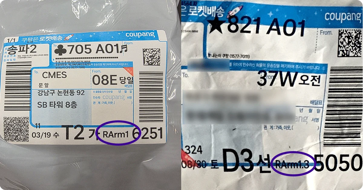 이커머스 시대의 상징인 로켓배송의 뒤에는 피지컬 AI가 있습니다. 쿠팡 배송 송장에서 발견할 수 있는 "R-Arm" 문구는 피스피킹 로봇이 직접 출고 제품을 인식하고 피킹, 포장까지 완료했다는 의미입니다. 피스피킹 로봇은 3D 비전으로 상품의 크기와 형태, 위치를 파악하고, 최적의 그립 방식을 AI로 계산해 로봇이 정확하게 집어 올립니다. 시간 당 600개 처리량을 선보이고 지치지 않으며, 24시간 쉬지 않고 일할 수 있는 이 AI 로봇 솔루션 덕분에 우리는 ‘로켓배송’의 편리함을 누릴 수 있는 것이죠.