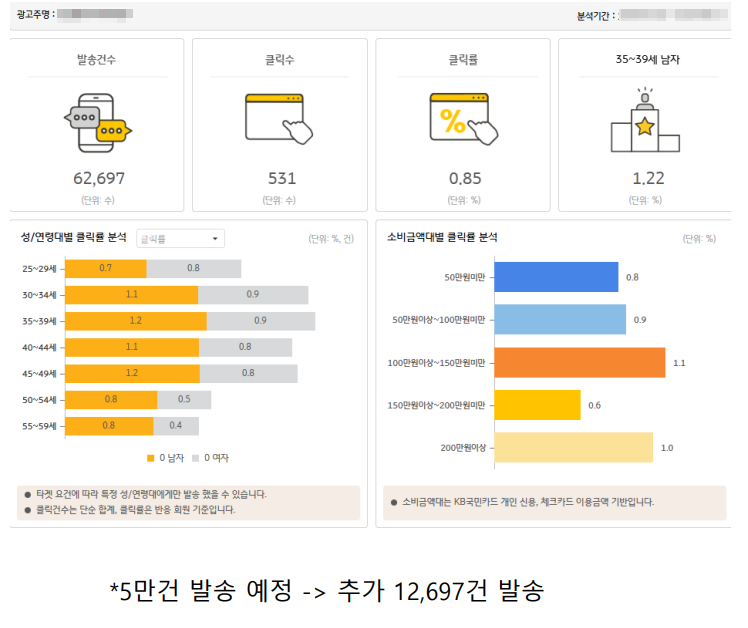 이번 국민카드 문자 캠페인은 62,697건 발송을 통해 데이터 기반 문자 마케팅의 가능성을 보여주었습니다.
