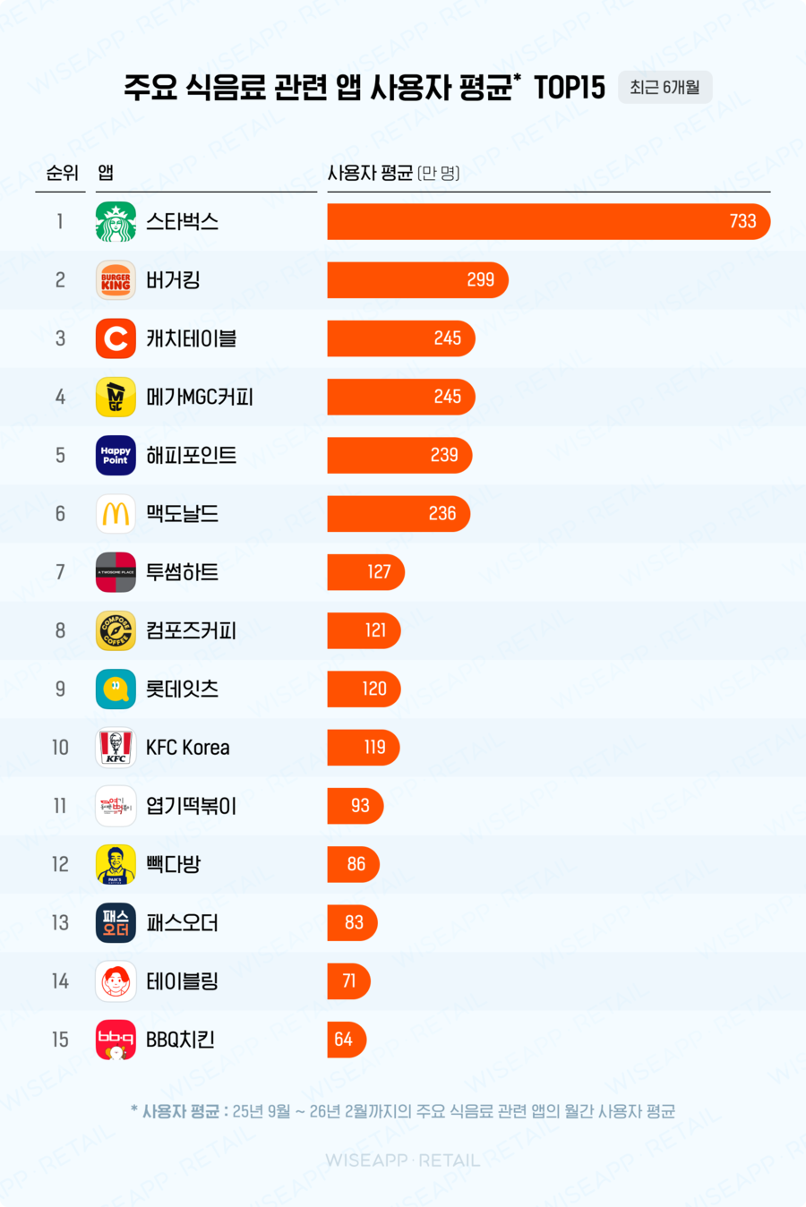 실시간 앱 데이터로 살펴본 26년 2월 식음료 앱/리테일 동향: 한국인이 가장 많이 찾은 식음료/외식 앱 및 리테일 브랜드는? 어떠셨나요?