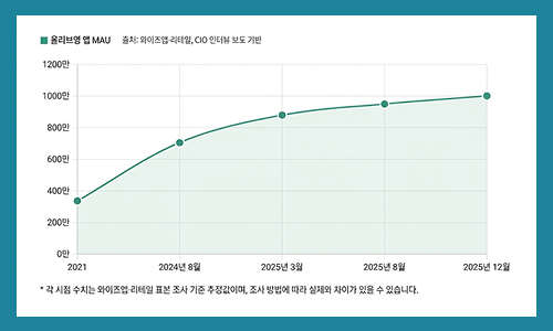 올리브영 앱 MAU가 수년 새 6배 넘게 뛰었어요