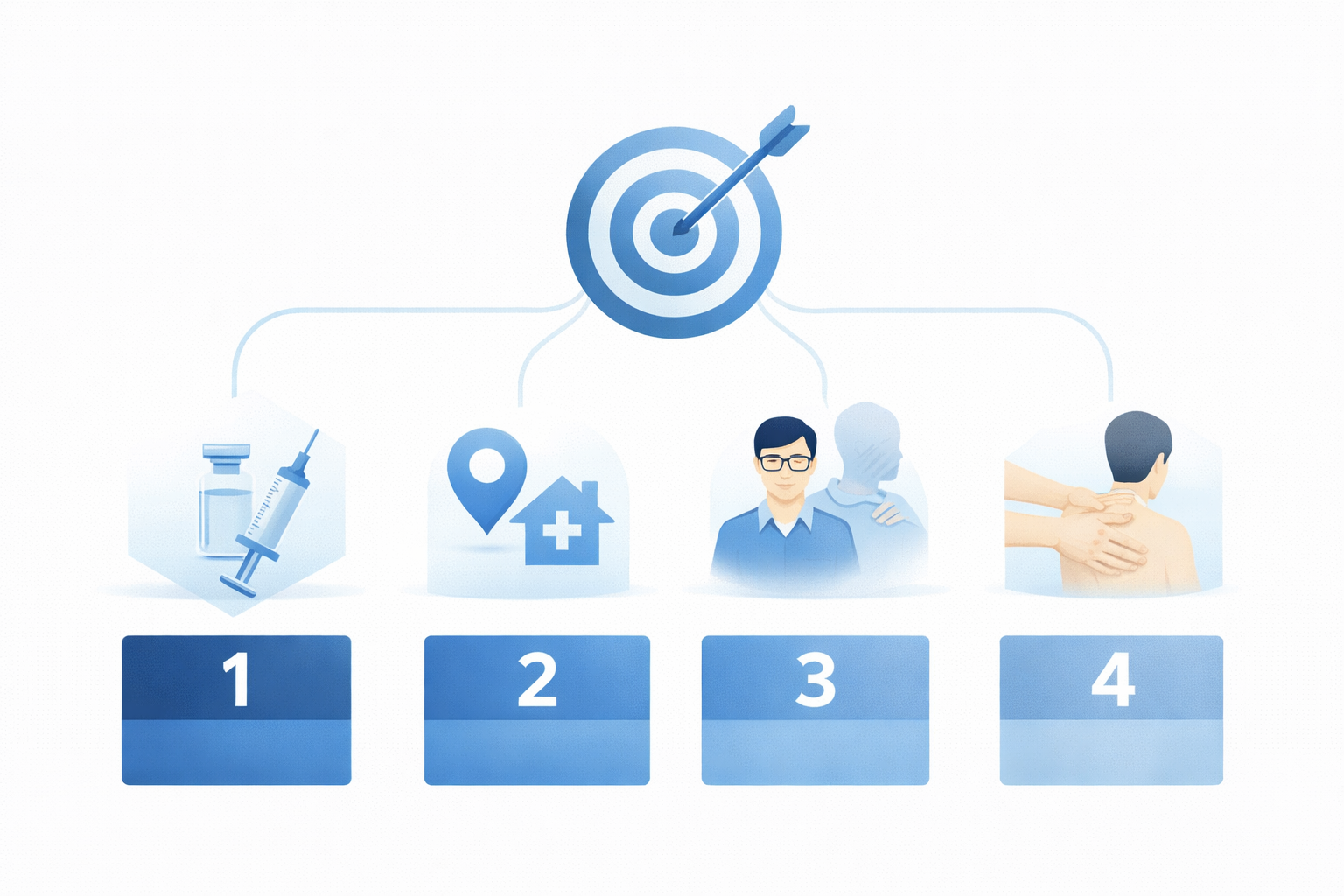 어떤 환자는 바로 병원명을 찾지 않습니다. 먼저 증상을 검색하고, 그다음 치료법을 찾고, 나중에 지역 병원을 찾습니다. 또 어떤 환자는 지역 키워드로 바로 들어옵니다. 어떤 환자는 특정 시술이나 주사명을 알고 검색합니다. 따라서 계정 구조는 환자 의도별로 준비되어 있어야 합니다.