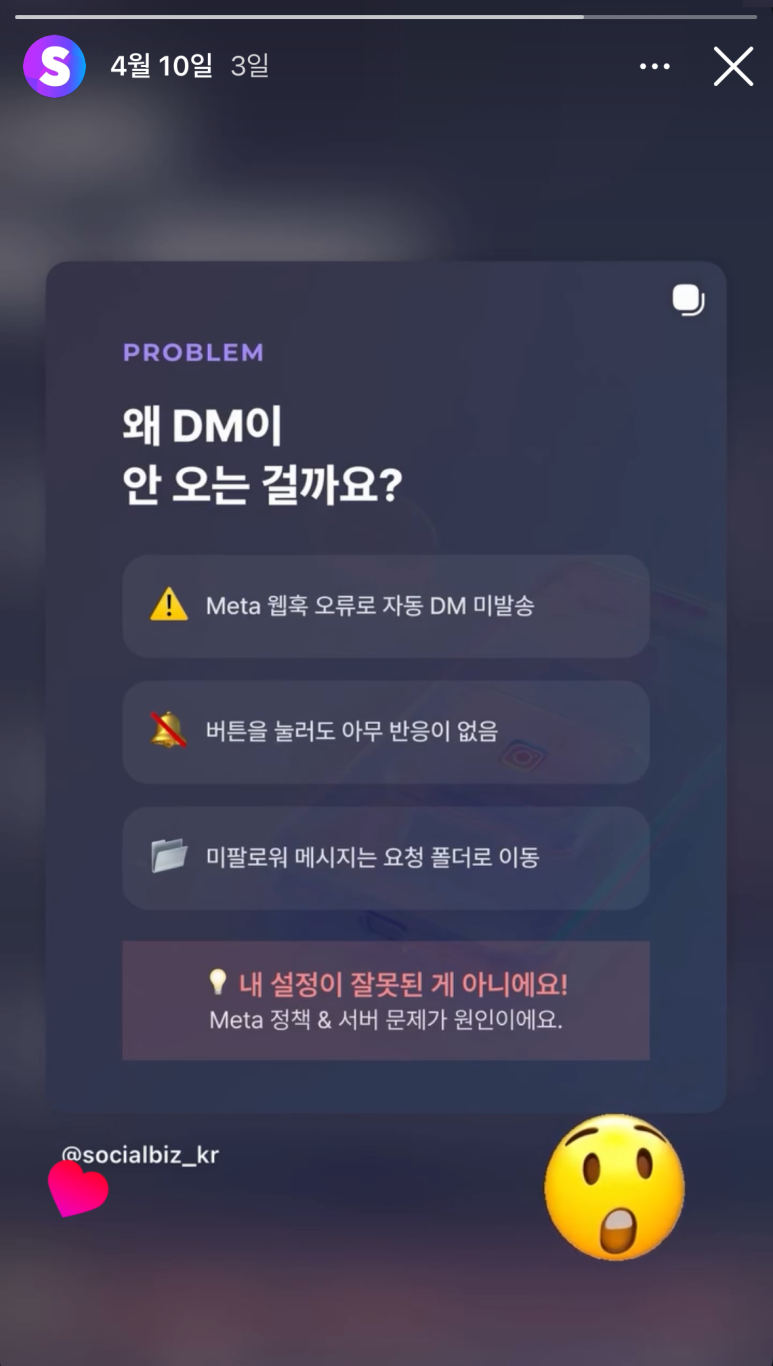 성과를 만드는 계정은 앞으로 이러한 이슈를 잘 살피고 계속 테스트를 하며 그 결과를 바탕으로 어떻게 전략을 설계할지에 따라 방향성이 많이 바뀔 것으로 보여요. 앞으로도 소셜비즈와 함께 인스타그램 마케팅 방법을 함께 만들어 나가보세요!