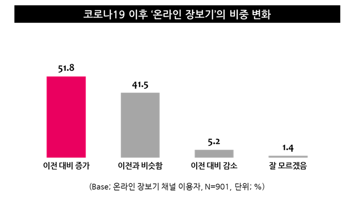 ● 예전보다 ‘온라인 장보기’ 이용 비중이 훨씬 커진 것으로 나타나
